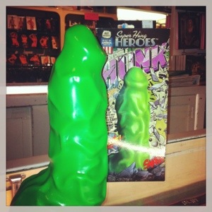 Or what about a thick girth slimy looking green dildo that resembles the Hulk?