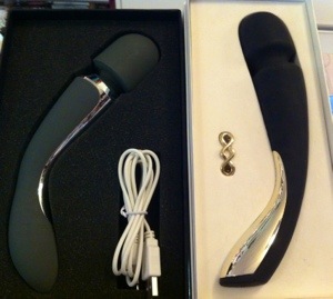The Smart Wand from Lelo is a rechargeable vibrator which you plug into the wall unit or a USB port but the Smart Wand is portable. The Smart Wand also comes in different sizes – the white one in the picture is the larger unit – which is also available in Plum and Black as well.