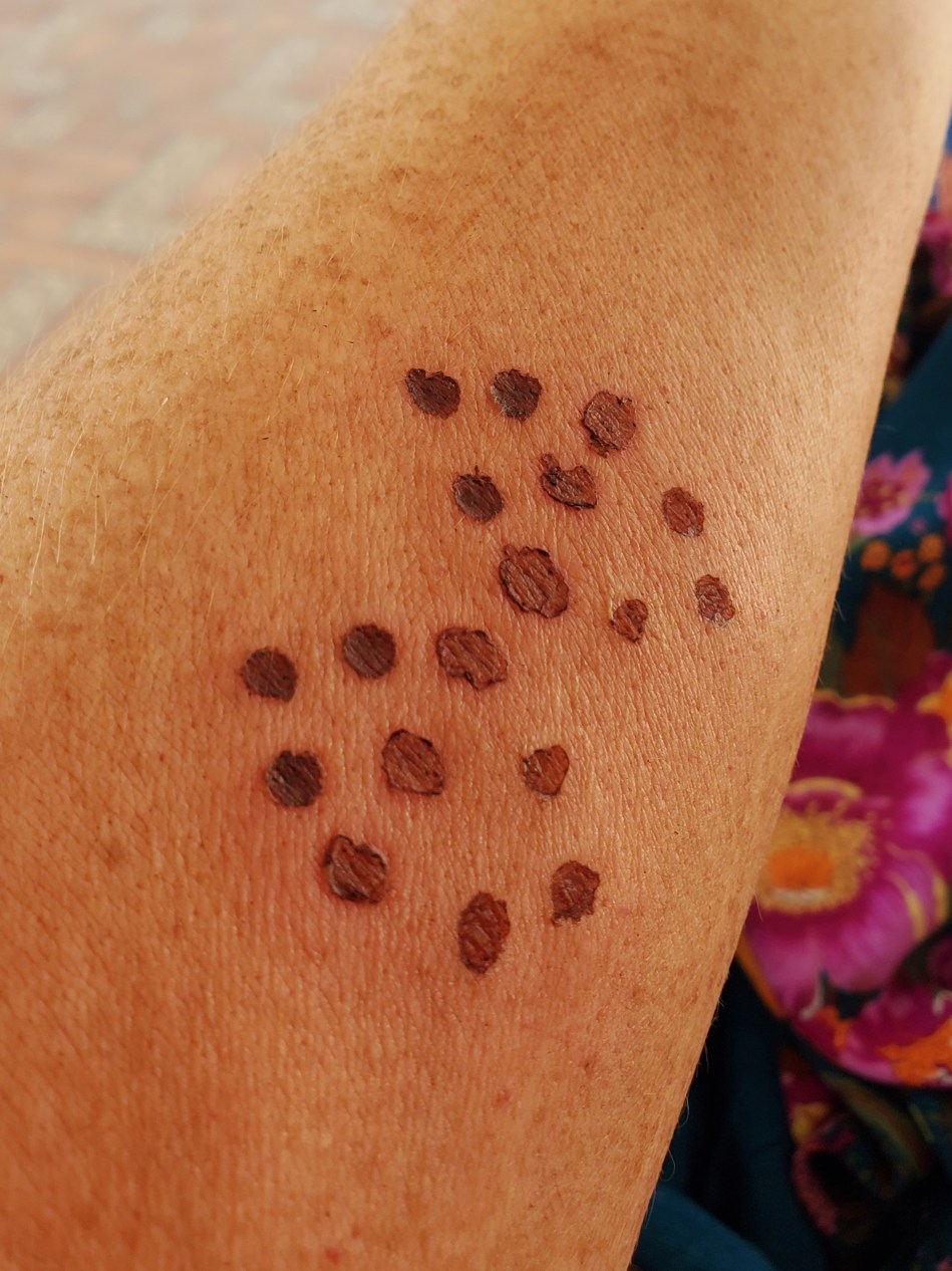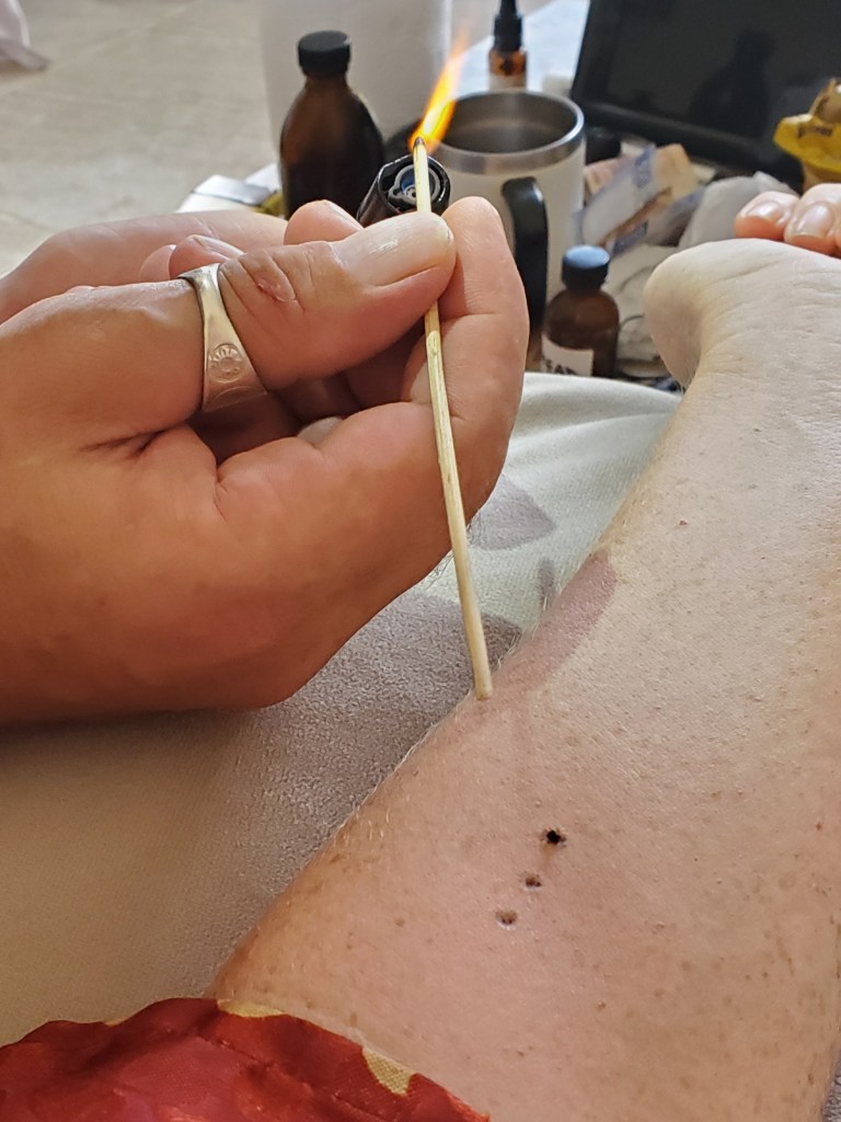 Copperhead Snake Venom treatment is what I wanted to experience. The process is quite simple and Ian knows his stuff – his knowledge and desire to help people. So I tried it 3 days in a row – every morning Ian burnt a wooden stick into my arm – 6 points then he added a drop of the venom to the 6 burns. The venom sat on my burns like a small bubble. You just sit and wait.
