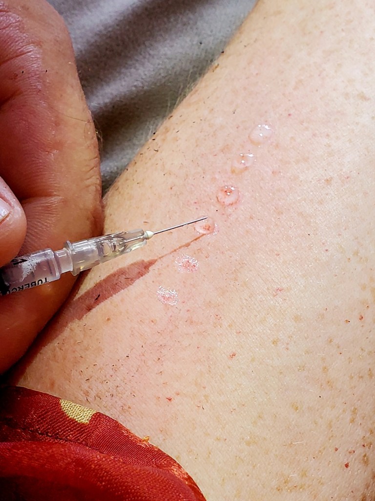 Day 2 and Day 3 are very similar but Ian the Snake Guy makes a fun design and each treatment is 6 burns. So at the end your arm looks like a funky design.